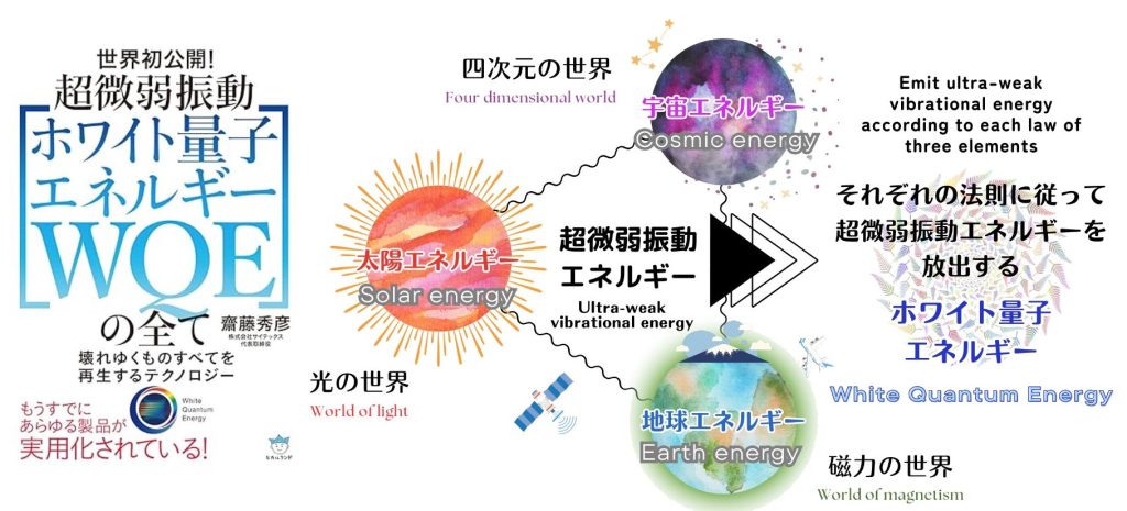 ホワイト量子エネルギー(WQE)斎藤秀彦氏によって開発された、特殊鉱石層と三原色を基軸としたエネルギーを高性能触媒機能により発生させる超微弱振動エネルギーの事を指します。